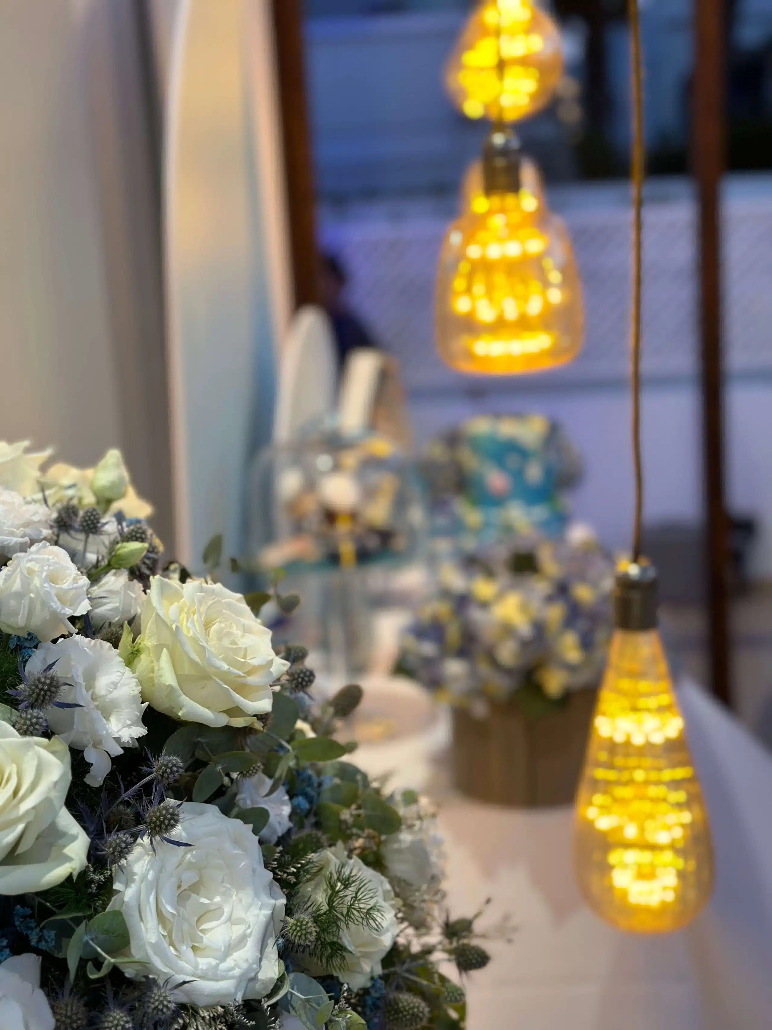 This luxury seaside Christening was a breathtaking celebration, held in the garden of a private residence on the seafront in Protaras, offering stunning coastal views. The elegant white and blue color theme was brought to life with lush white roses, delicate blue limonium, and fresh eucalyptus, creating a serene and sophisticated atmosphere. Floating pool lights and ambient installed lighting enhanced the evening ambiance, transforming the space into a magical setting. The private residence was expertly turned into a full-scale venue, complete with catering equipment, professional chefs, and staff coordination. As hosts, we ensured a seamless, elegant, and unforgettable Christening experience.